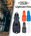 De Tecline Lightjet Fins zijn licht gewicht vinnen, uitermate geschikt in combinatie met je natpak en heerlijk om mee te nemen op vakantie. Deze vinnen, gemaakt van gerecycled materiaal, worden geleverd met SS spring straps. Het gewicht van één vin met spring strap is, afhankelijk van de maat, tussen de 0,8 en 1,1 kg. Leverbaar in de maten S/M, L en XL.