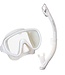 De Tusa Serene snorkelset heeft een wat smallere pasvorm wat vooral voor dames, kinderen en mannen met een smal gezicht prima is. De snorkelset bestaat uit een Tusa Serene masker en een snorkel. Het Serene masker geeft een breed gezichtsveld. Het Tusa masker biedt comfort en het zachte siliconen vormt om het gezicht. De snorkel beschikt over de TUSA Hyperdry Elite droogtop technologie die geen water meer doorlaat aan de bovenkant. Het uitblaasventiel zorgt voor het gemakkelijk watervrij maken van de snorkel. Het mondstuk is gemaakt van hypoallergeen kristal siliconen en is draaibaar. Een comfortabele snorkelset voor iedereen die wil genieten van het snorkelen en duiken.